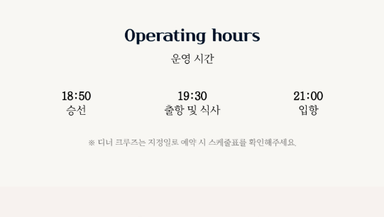 - 예약: 02-6958-5117 또는 이랜드 크루즈 사이트