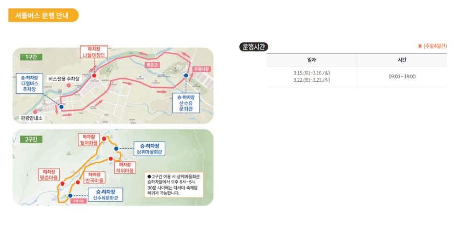 - 장소: 구례 산수유마을 일원 (전남 구례군 산동면 상관1길 45)