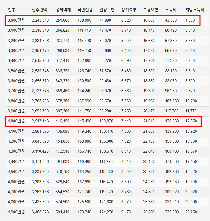 2. 연봉별 실수령액 현실 파헤치기 (3000~1억)